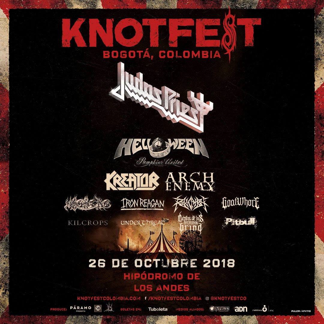 El festival llegó por primera vez a Colombia en 2018 con un cartel que incluía a Judas Priest Helloween y Kreator. Cooperativa - 9 month ago. Festival Knotfest aterrizará en Chile el 2021.